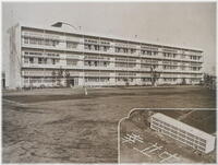 新校舎に登校する生徒 竣工間もない校舎 北側から見た校舎