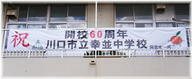 ※川口市9番目の学校として設立されました。当時、西川口駅ができ、その周辺の人口が急増した事に伴い、幸町、 栄町、並木町の生徒が通学する中学校として開校されました。