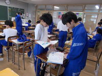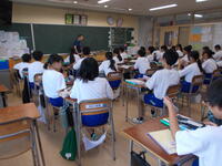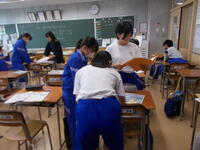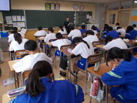 最初は漢字テスト。授業前から勉強している人がたくさんいました。