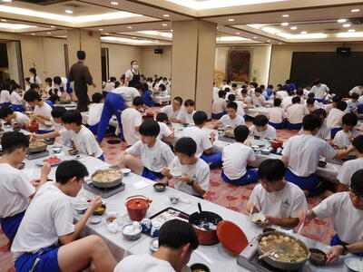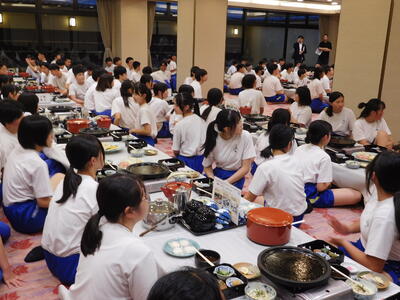 宿舎に戻った後は入浴を済ませ、夕食は待ちに待った「すき焼き」!しかも、食べ放題!そして、女将さんの温かなお心配りをいただき、この三日間の間に誕生日を迎える仲間のサプライズ祝いも行い、笑顔あふれる最高の食事となりました。