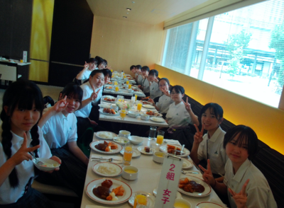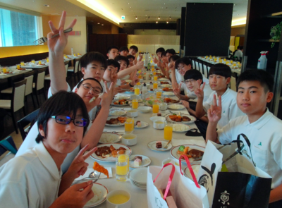 夕方には全員が無事に嵯峨グレースホテルに到着。入浴後、おいしい夕食をいただき、1日目を元気に終えることができました。