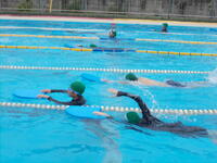 深く潜って泳いだり、ビート板をつかってバタ足をしたり、