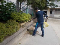 掃除場所に移動したら、班ごとにリーダーの説明を聞き、約2時間の掃除が始まります。