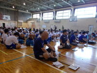 野球部員の準備体操はテンポよく、事前に練習してくれた甲斐あって、素晴らしい体操でした。