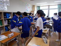 先生の問いかけに、「ペンを置く!」「さすが!いいね!」