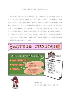 もう間もなく春休みを迎えます。家庭での生活が中心となる中、進級や学業、友人関係等に起因する悩みや、漠然とした心理的な不安があったら、一人で抱え込まずに、誰かに相談してください。