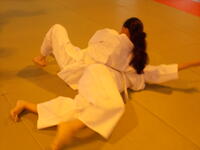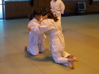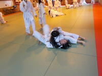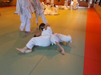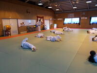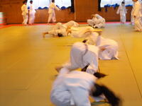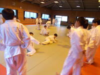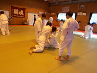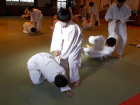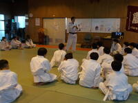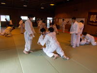 先生から、「抑え込み」「技あり」「一本」や「指導」などのルールについても説明があり、対戦相手を変えて、また、たくさん試合ができました。あちこちでさらにいい攻防戦がみられました。