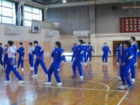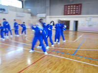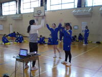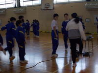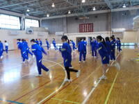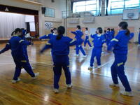 基本の動きは、速さを落とした曲に合わせて全員で練習します。