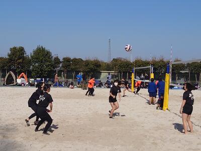 2月12日にしらこばと水上公園のホワイトビーチにて、埼玉県4人制ビーチバレーボール講習兼秋冬季大会が行われ、女子バレーボールの2年生5人が参加してきました。