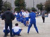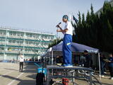 昨夜の雨は校庭に残っていましたが、今朝は天気に恵まれ、朝早くから先生・係の生徒たちが奮闘し、予定通りに開会式を始めることができました。