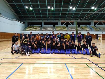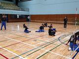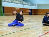 実際に試合も体験しました。普段やっているバレーボールとは違い、手を使って移動をし、床から起き上がることができないので、とても難しかったですが、立っていたら落ちてしまうような床面ギリギリのボールを拾ってつないだり、必死にボールを追ったりと、全力でプレーをすることができました。昨年参加した2年生はとても上達をしていました。今年から参加した1年生も楽しくプレーできました。