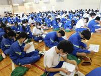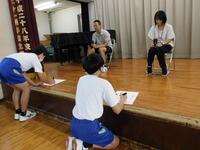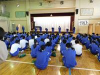 2時間目には学年集会を行い、学年委員から1学期の振り返り、それぞれの先生方から「人の心をもち、素直に変容していくこと」「学力向上のための4つのポイント」などのお話がありました。