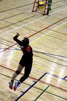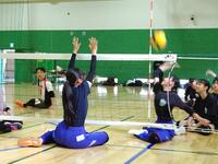 シッティングバレーボールとは、パラリンピック競技の1つであり、下肢などに障がいのある選手が座ってプレーをするバレーボールで、でん部を床についたまま競技を行います。