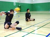 実際に試合も体験しました。普段やっているバレーボールとは違い、手を使って移動をし、床から起き上がることができないので、とても難しかったですが、立っていたら落ちてしまうような床面ギリギリのボールを拾ってつないだり、必死にボールを追ったりと、全力でプレーをすることができました。